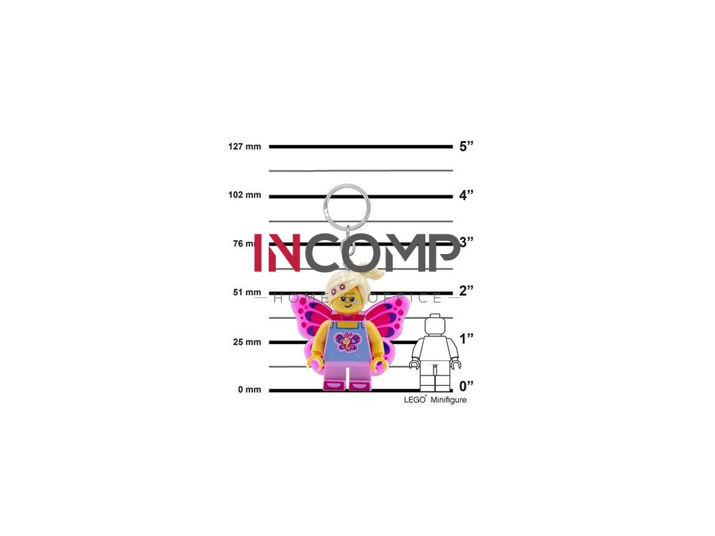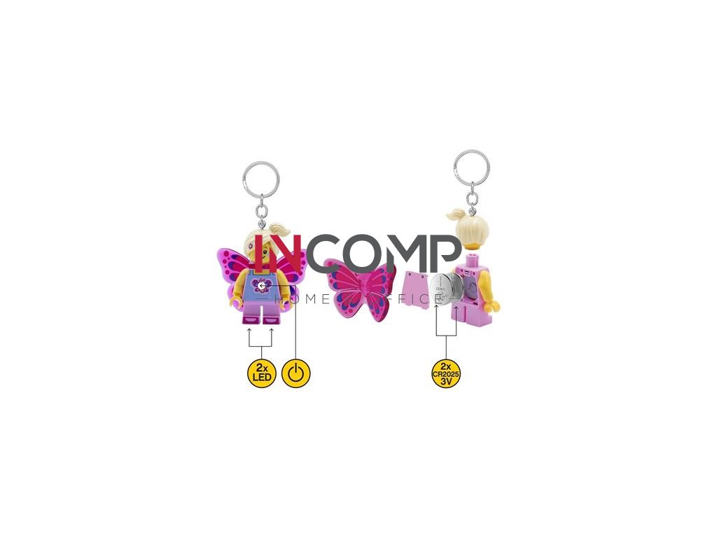 LEGO® Classic Butterfly Girl svietiaca kľúčenka! výška: 7,5 cm (ruky a nohy sú odpojiteľné) -funguje na 2x CR2025/3V batérie (sú súčasťou balenia) -odporúčaný vek: 6+