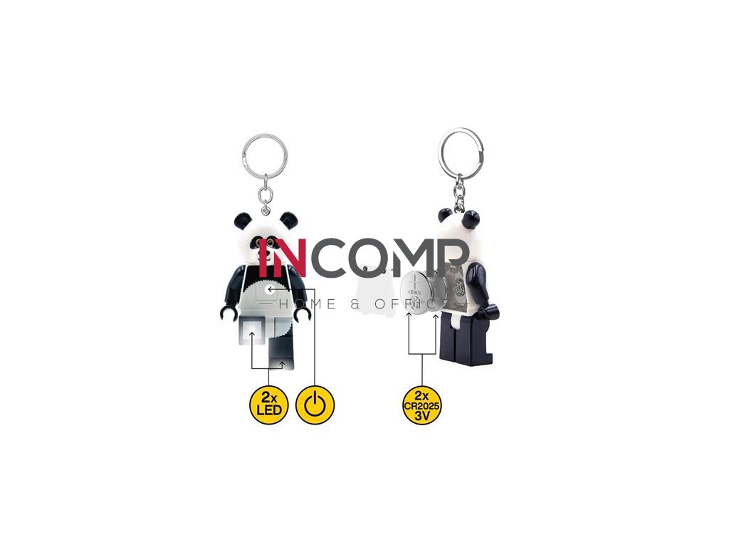 LEGO® Panda Guy svietiaca kľúčenka! výška: 7,5 cm (ruky a nohy sú odpojiteľné) -funguje na 2x CR2025/3V batérie (sú súčasťou balenia) -odporúčaný vek: 6+