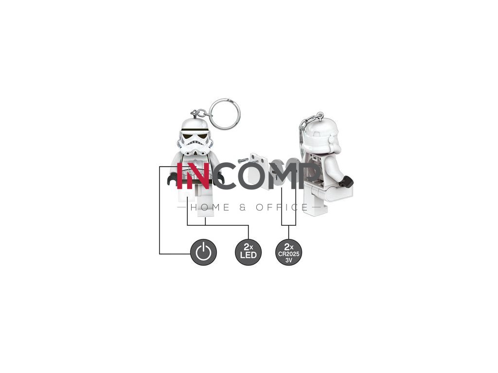 LEGO® Star Wars Stormtrooper svietiaca kľúčenka! výška: 7,5 cm (ruky a nohy sú odpojiteľné) -funguje na 2x CR2025/3V batérie (sú súčasťou balenia) -odporúčaný vek: 6+