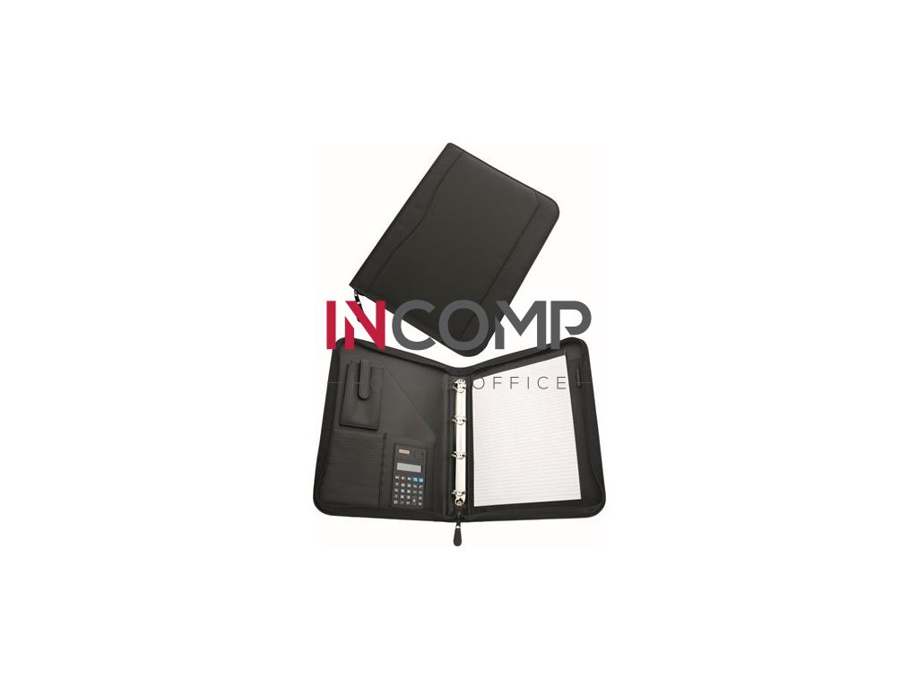 Konferenčná doska, A4, koženka, s krúžkami, s kalkulačkou, čierna