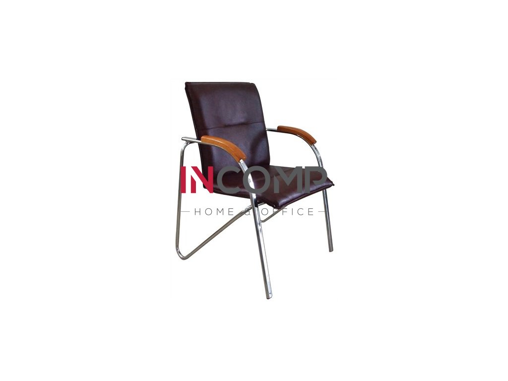 Konferenčná stolička, koženka, chrómová oceľ, opierka rúk: čerešňa, "Sabina", čierna