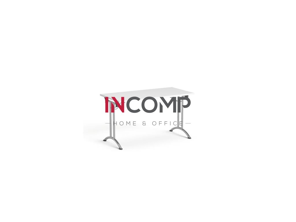 Skladací konferenčný stôl s ohýbateľnými chrómovými kovovými nohami.