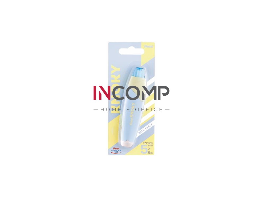 Korekčný roller, 5 mm x 6 m, naplniteľný, PENTEL "Knoky", modrý-žltý