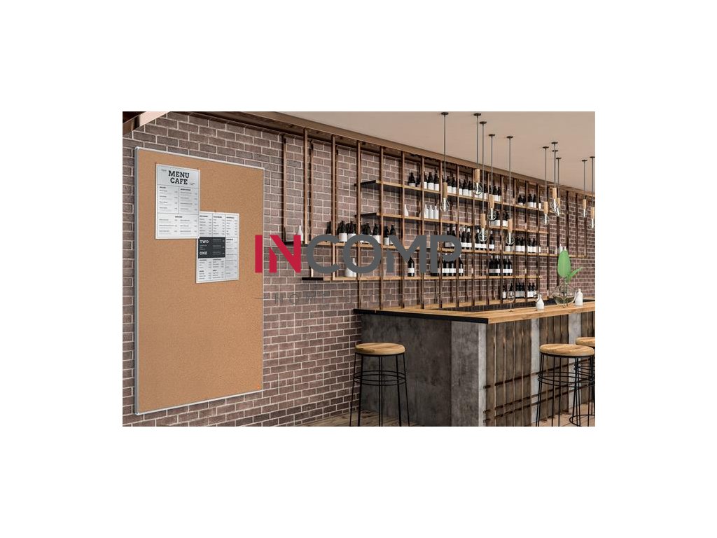 korková tabuľa, širokouhlá, s moderným úzkym rámom a väčším povrchom na písanie