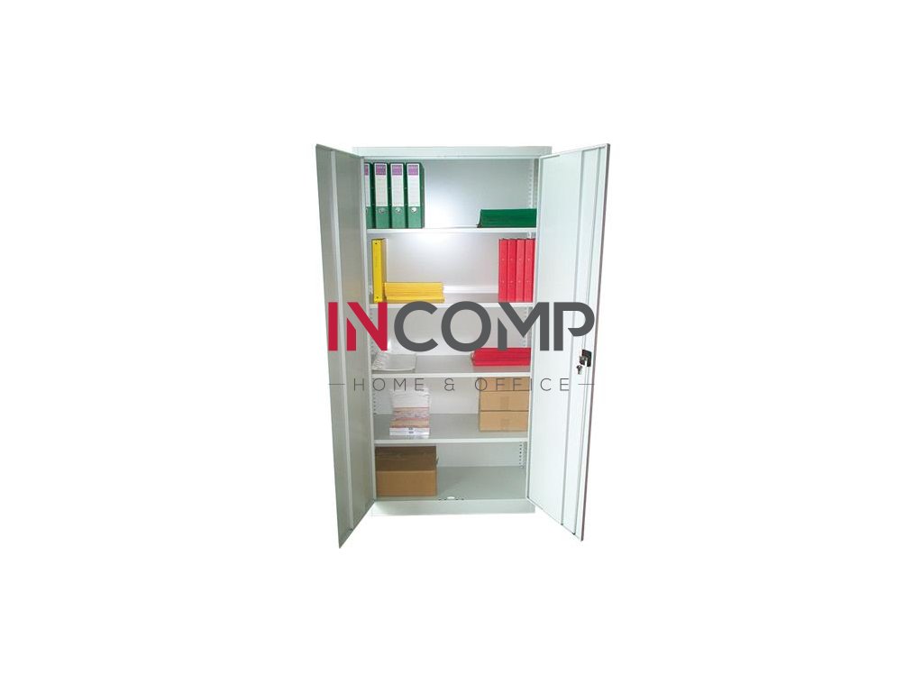 Kovová skriňa, dvojdverová, s poličkami, MAYAH, sivá