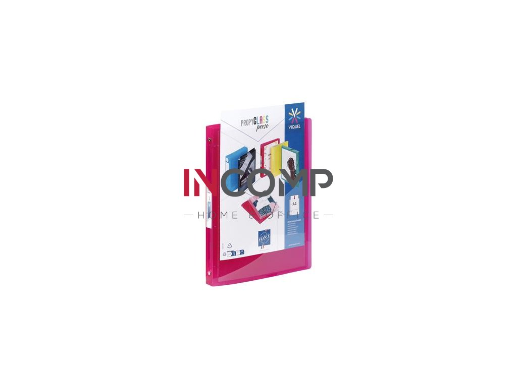 Krúžkový šanón, panoramatický, 4 krúžky, 25 mm, A4, PP, VIQUEL "Propyglass Perso", červená