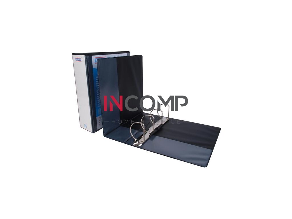 Krúžkový šanón, panoramatický, 4 krúžky, tvar D, 100 mm, A4, PP, DONAU, čierna