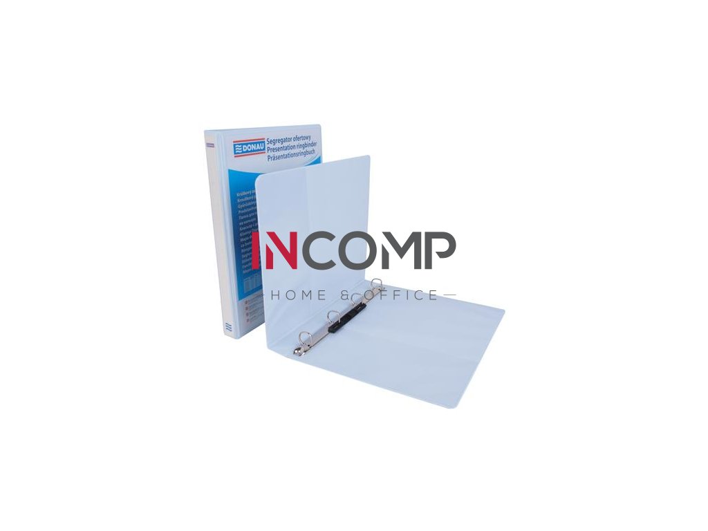 Krúžkový šanón, panoramatický, 4 krúžky, tvar D, 37 mm, A4, PP, DONAU, biela