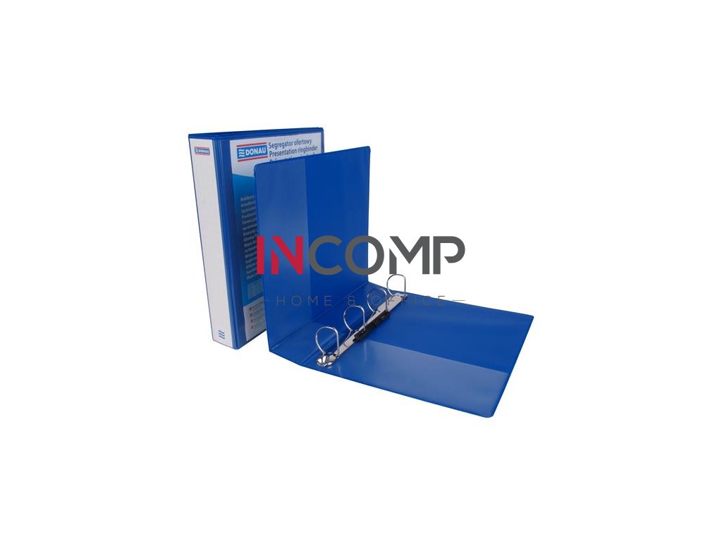 Krúžkový šanón, panoramatický, 4 krúžky, tvar D, 63 mm, A4, PP, DONAU, modrá