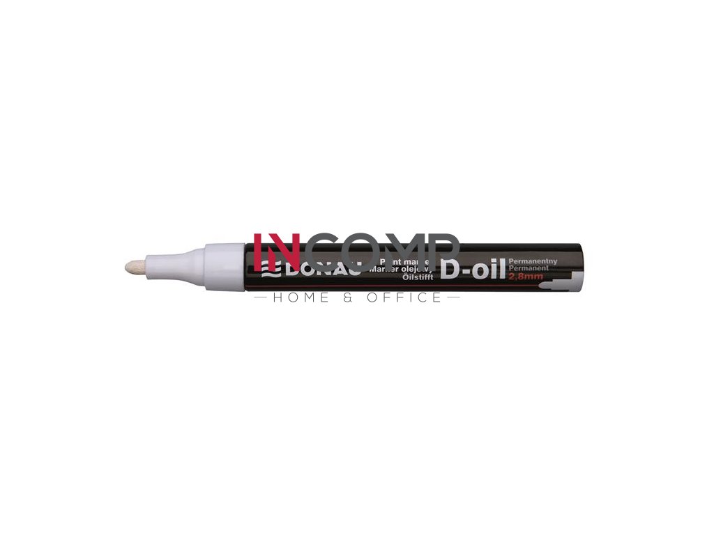 kuželový hrot, vhodné na všetky povrchy, na olejovej báze (bez xylolu), nestierateľné a vodeodolné, rýchloschnúci atrament, uzáver vo farbe náplne, hrúbka písma: 2,8 mm