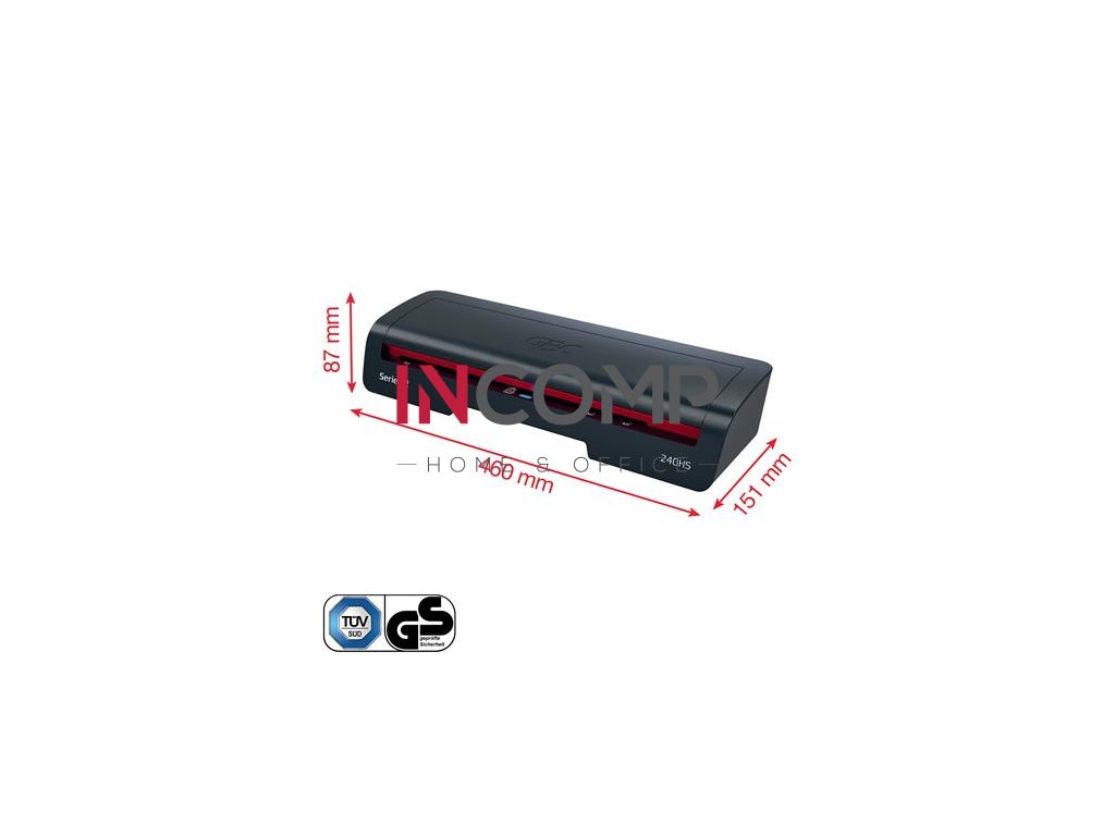 GBC 240HS je elegantné a efektívne riešenie pre každodenné laminovacie potreby. Vysokorýchlostný laminovač formátu A3 navrhnutý so zreteľom na štýl a výkon je ideálny pre domáce alebo domáce kancelárske použitie. Chráňte a uchovajte svoje dôležité dokumenty vždy v dokonalom prevedení.