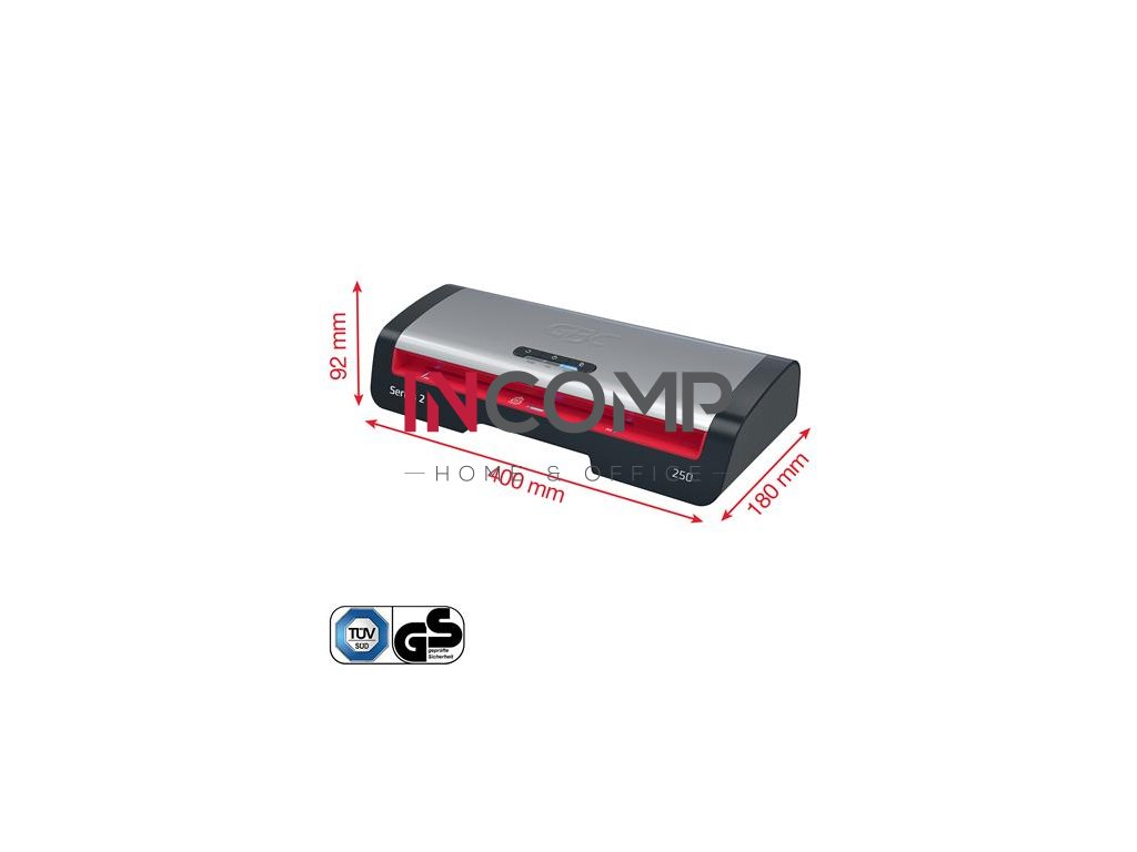 GBC 250 A4 laminovací stroj poskytuje spoľahlivé a efektívne riešenie pre každodenné kancelárske laminovacie potreby. Laminovač navrhnutý pre profesionálne prostredie kombinuje vynikajúci výkon s ľahkou obsluhou. Chráňte a uchovajte svoje dôležité dokumenty rýchlo a zakaždým s hladkým, profesionálnym prevedením.
