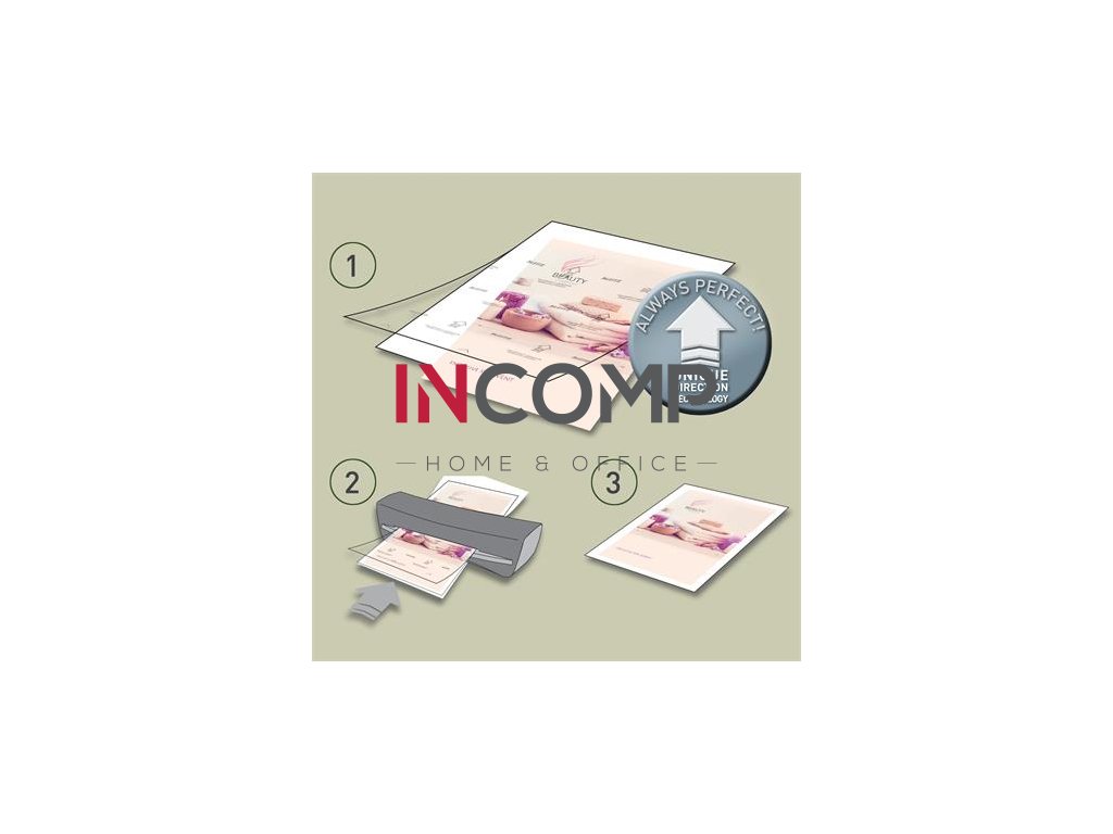- Unikátna smerovacia technológia navádza k správnemu vloženiu obalu v smere šípok, ktoré sú umiestnené na obale a ktoré po laminácii zmiznú
