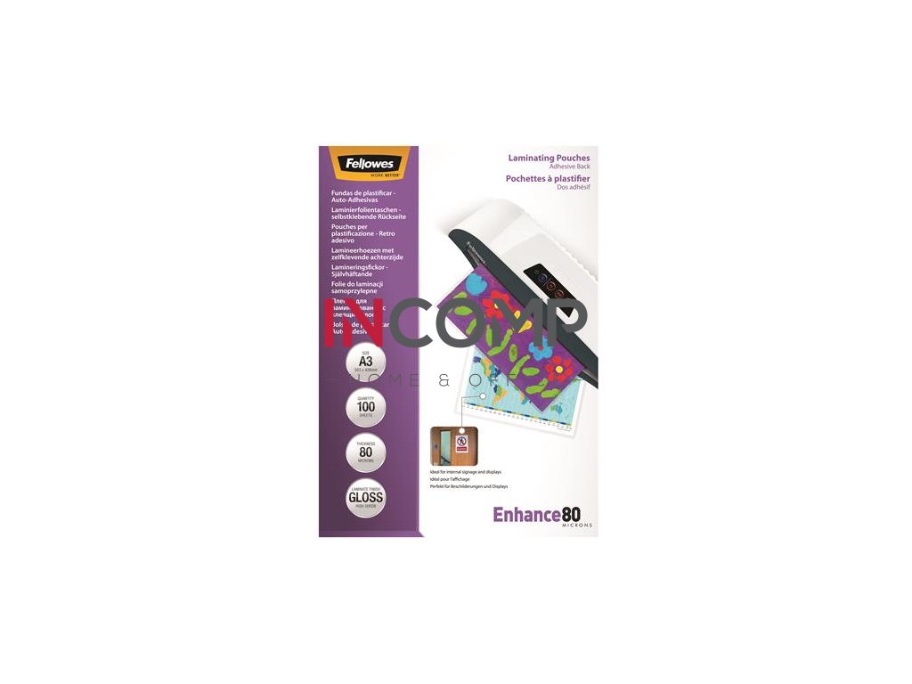 Laminovacia fólia, 80 mikr., A3, lesklá, samolepiaca, 100 ks, FELLOWES