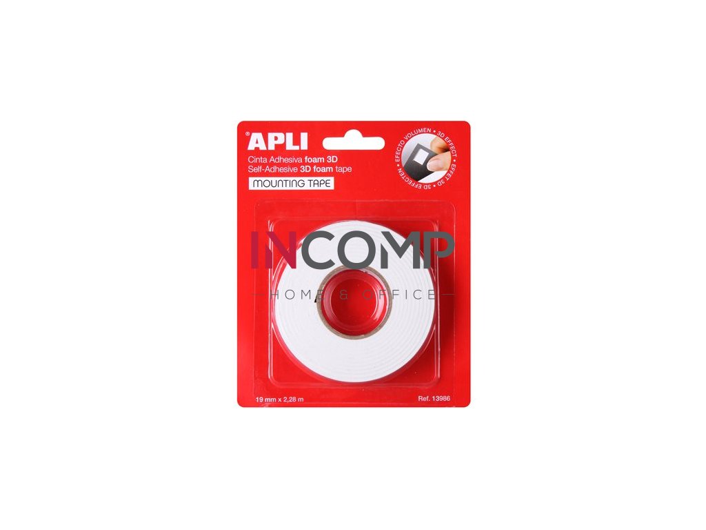Lepiaca páska, rolka, 3D, obojstranná, pena, APLI, 19 mm x 2,28 m, biela