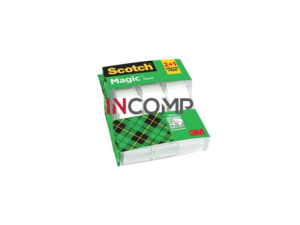 Lepiaca páska, s dispenzorom, ručná, 19 mm x 7,5 m, 3M SCOTCH "Magic Tape 810",2+1