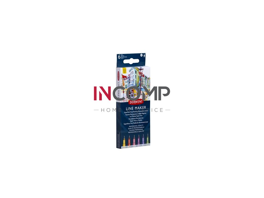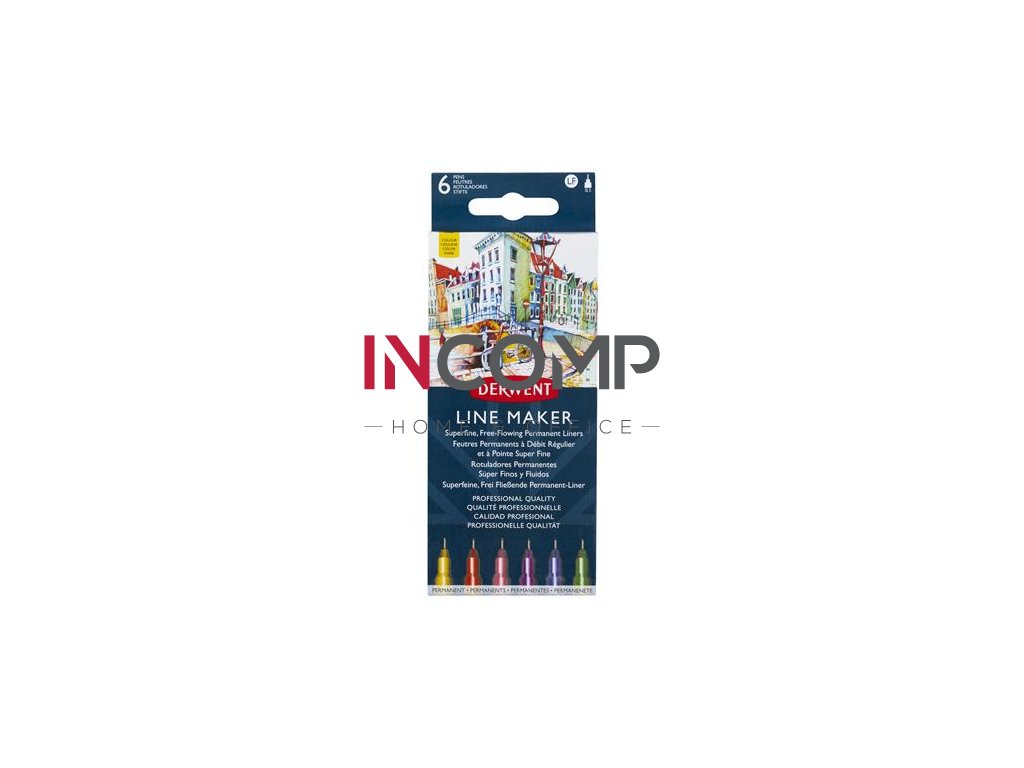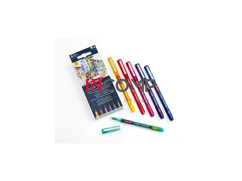 Liner, sada, 0,3 mm, DERWENT "Line Marker", 6 rôznych farieb