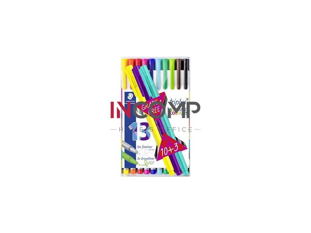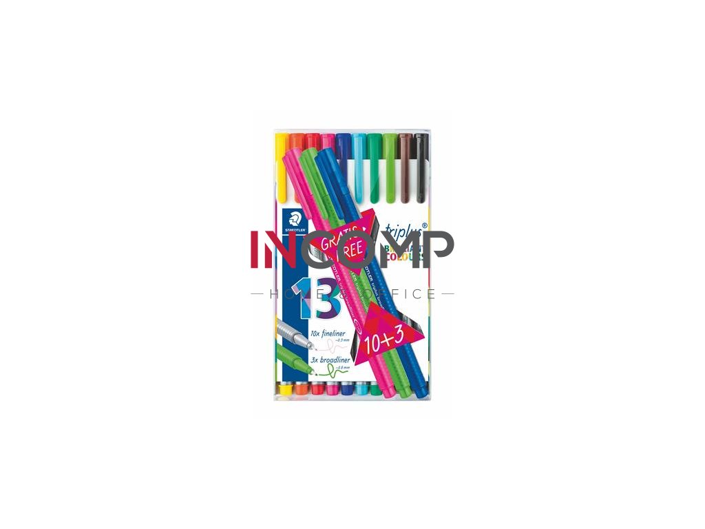 Liner, sada, 0,3 mm, STAEDTLER "Triplus 334", 10+3 rôznych farieb