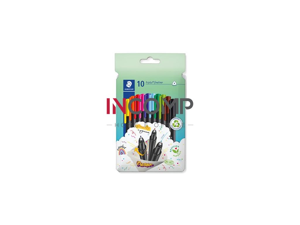 Liner, sada, 0,3 mm, STAEDTLER "Triplus 334", 10 rôznych farieb