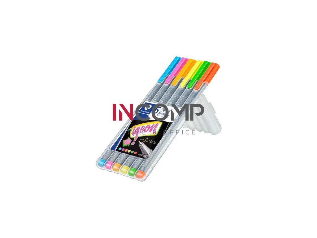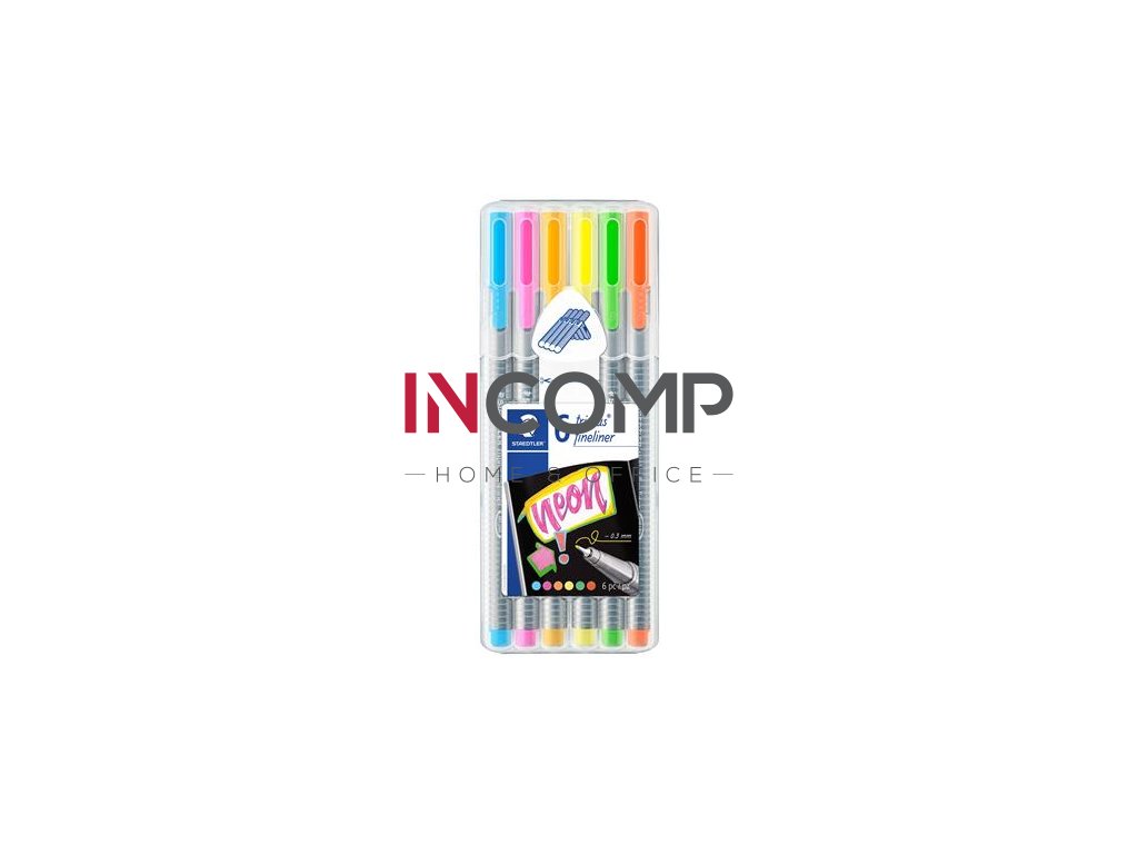 Liner, sada, 0,3 mm, STAEDTLER "Triplus 334", 6 neónových farieb