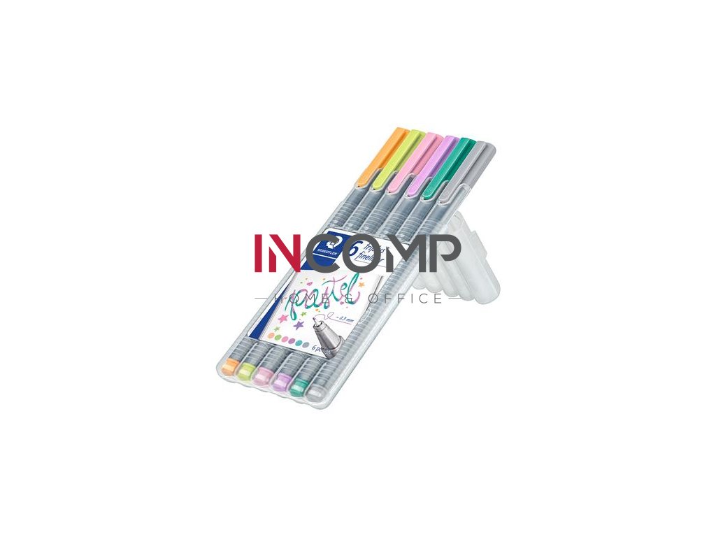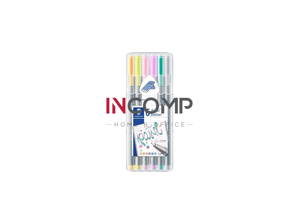 Liner, sada, 0,3 mm, STAEDTLER "Triplus Pastel 334", 6 pastelových farieb