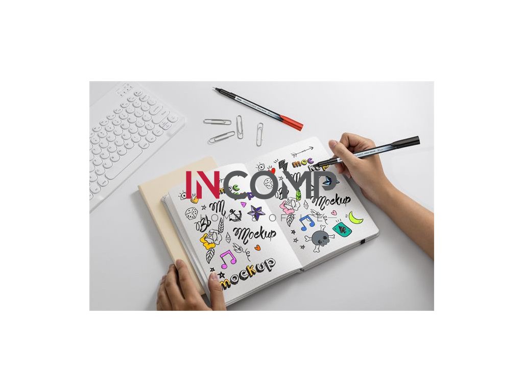 Pentel farebný liner s tenkým plastovým hrotom a atramentom na vodovej báze (dye) predstavuje pre značku typickú, výbornú kvalitu.