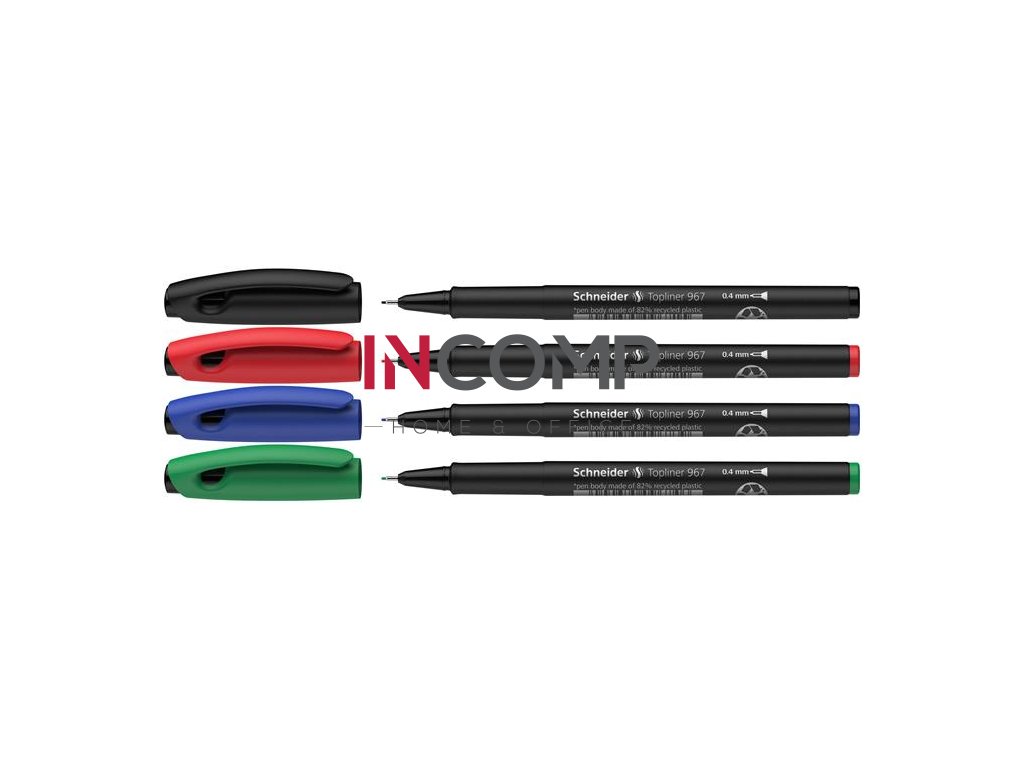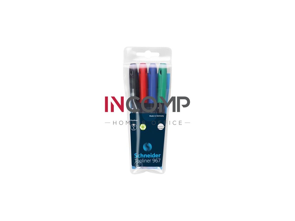 Liner, sada, 0,4 mm, SCHNEIDER "Topliner 967", 4 rôzne farby