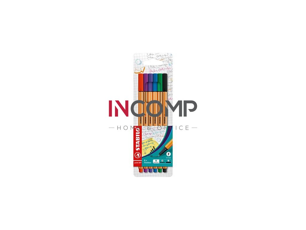 Liner, sada, 0,4 mm, STABILO "Point 88", 6 rôznych farieb
