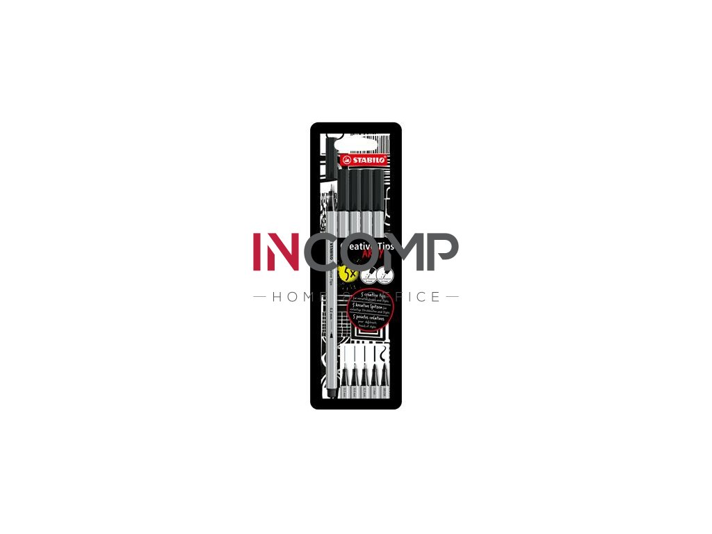 Liner, sada, STABILO "Creative Tips ARTY", čierna, 5 rôznych hrúbok