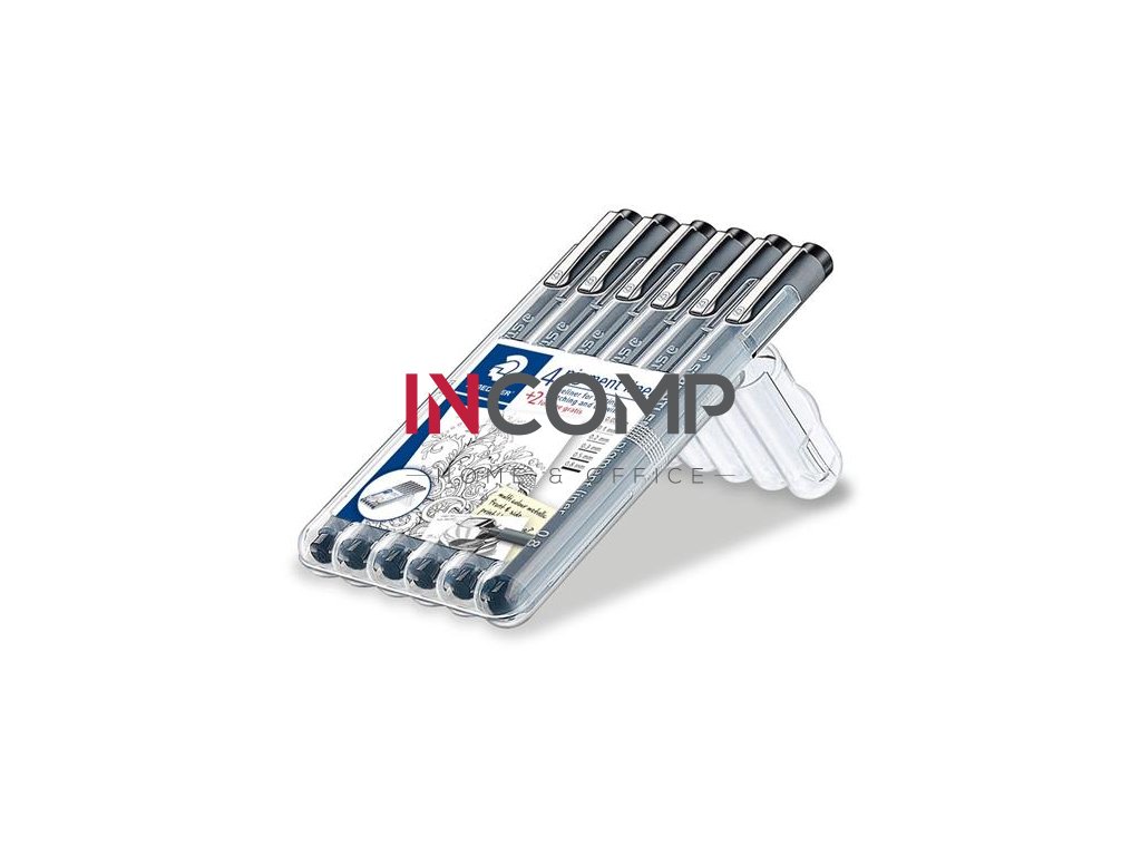 Liner, sada, STAEDTLER "Pigment Liner 308", 4+2 ks, čierna