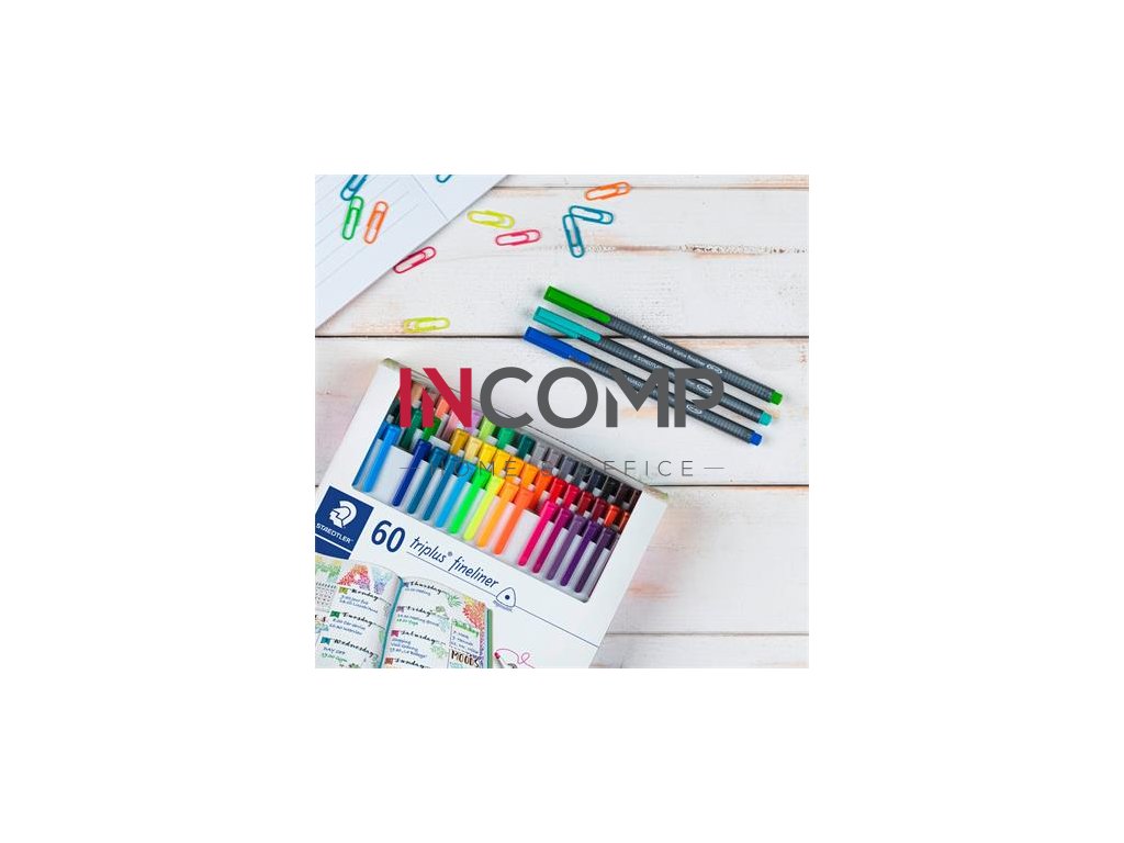 Liner, sada, 0,3 mm, STAEDTLER "Triplus 334", 60 rôznych farieb