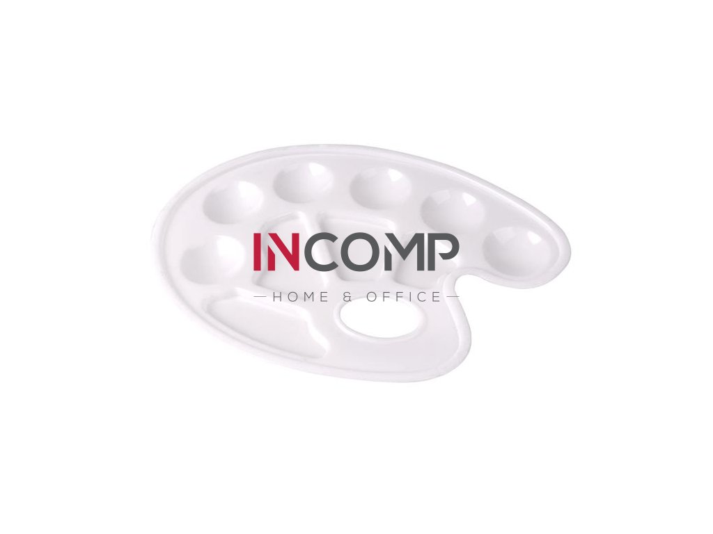 -plastová paleta na miešanie farieb - vďaka otvoru na palec sa veľmi dobre drží - paleta obsahuje 10 kalíškou na farby -s hrubým okrajom na zamedzenie odkvapkávania -rozmer: 22 x 16,5 cm - celofánové balenie s držiakom