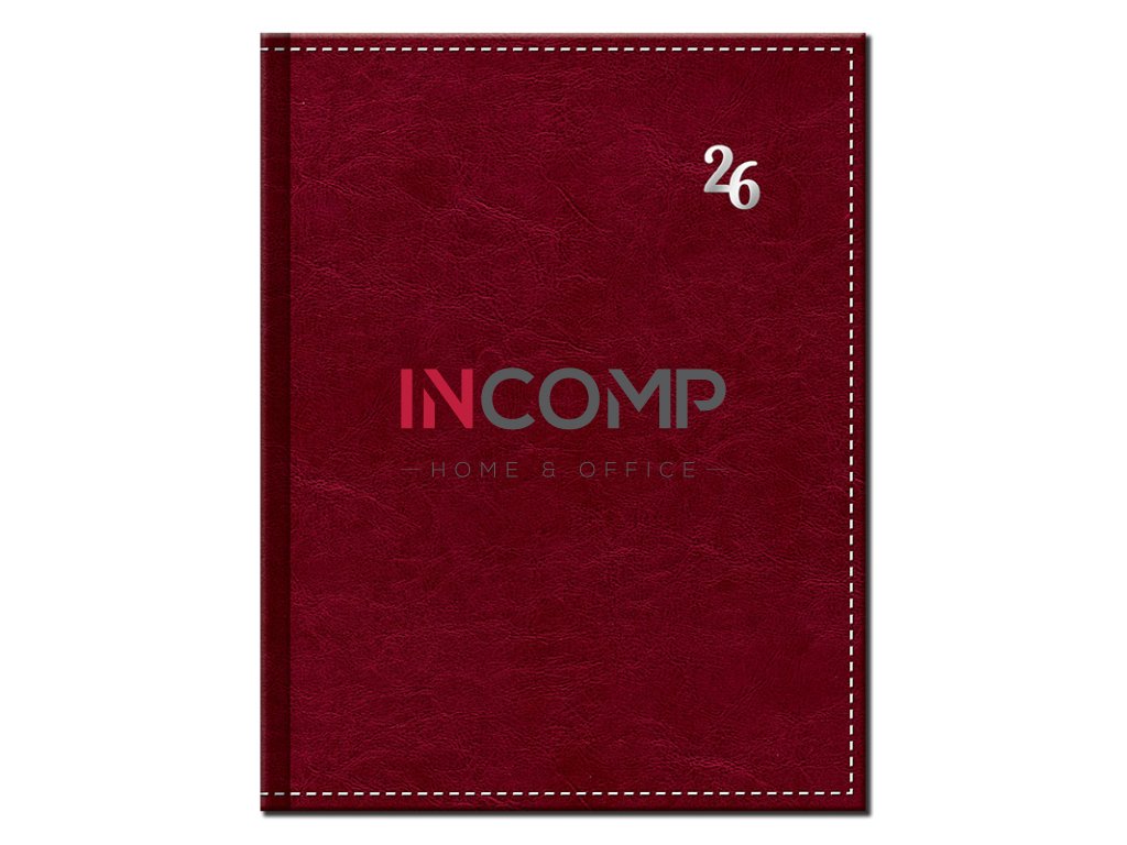 Luxusný manažérsky týždenný diár z ekologickej kože s prehľadným kalendáriom na celý týždeň. Diár je v pevnej väzbe s prednou aj zadnou penovou doskou, doplnený ozdobným prešitím po obvode diára, strieborným plieškom s rokom a dvoma lacetkami. Obsahuje slovenské kalendárium.