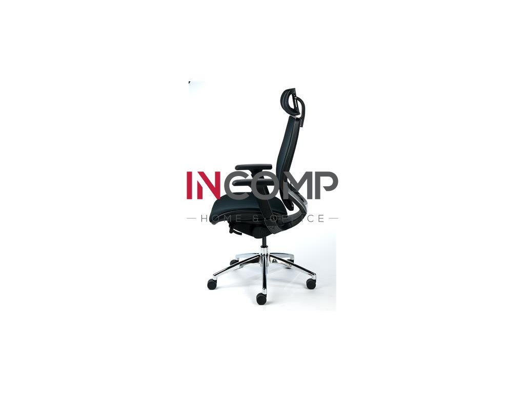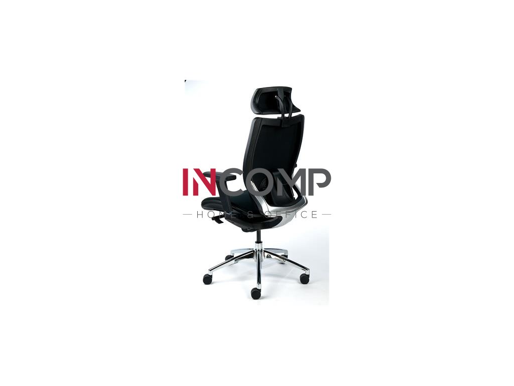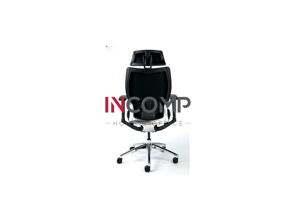 Manažérska stolička, opierka hlavy, čierne čalúnenie, sieťové operadlo, hliníkový podstavec, MAYAH "Crown"