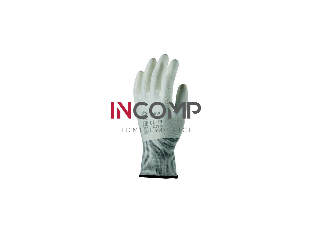 Montážne rukavice, biele, na dlani namočené do polyuretánu, veľkosť: 7