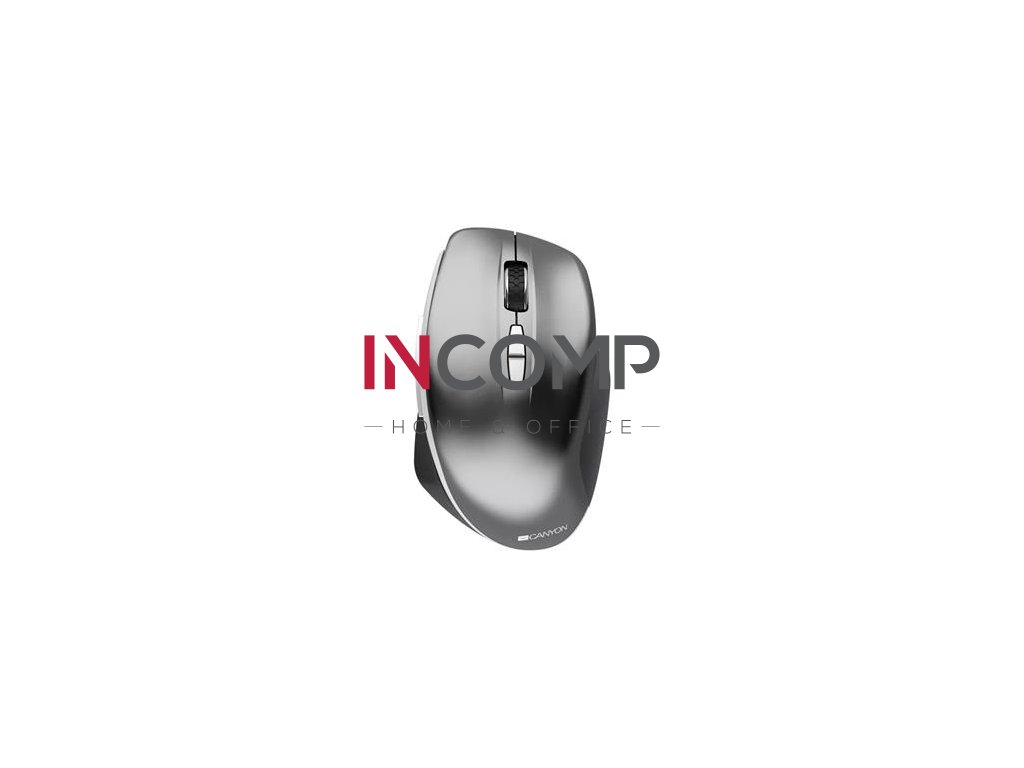 Bezdrôtová myš CANYON so senzorom "Blue LED". - bezdrôtové 2,4 GHz USB pripojenie - optický senzor s technológiou "Blue LED" - 7 tlačidiel - 3 úrovne DPI: 800/1200/1600 - monolit UV matný a pogumovaný - obsahuje 2 AAA batérie - rozmery: 117x41x72 mm - záruka 2 roky
