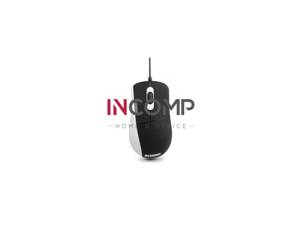 Myš, drôtová, optická, stredná veľkosť, USB, URBAN FACTORY "Softee", čierna-biela