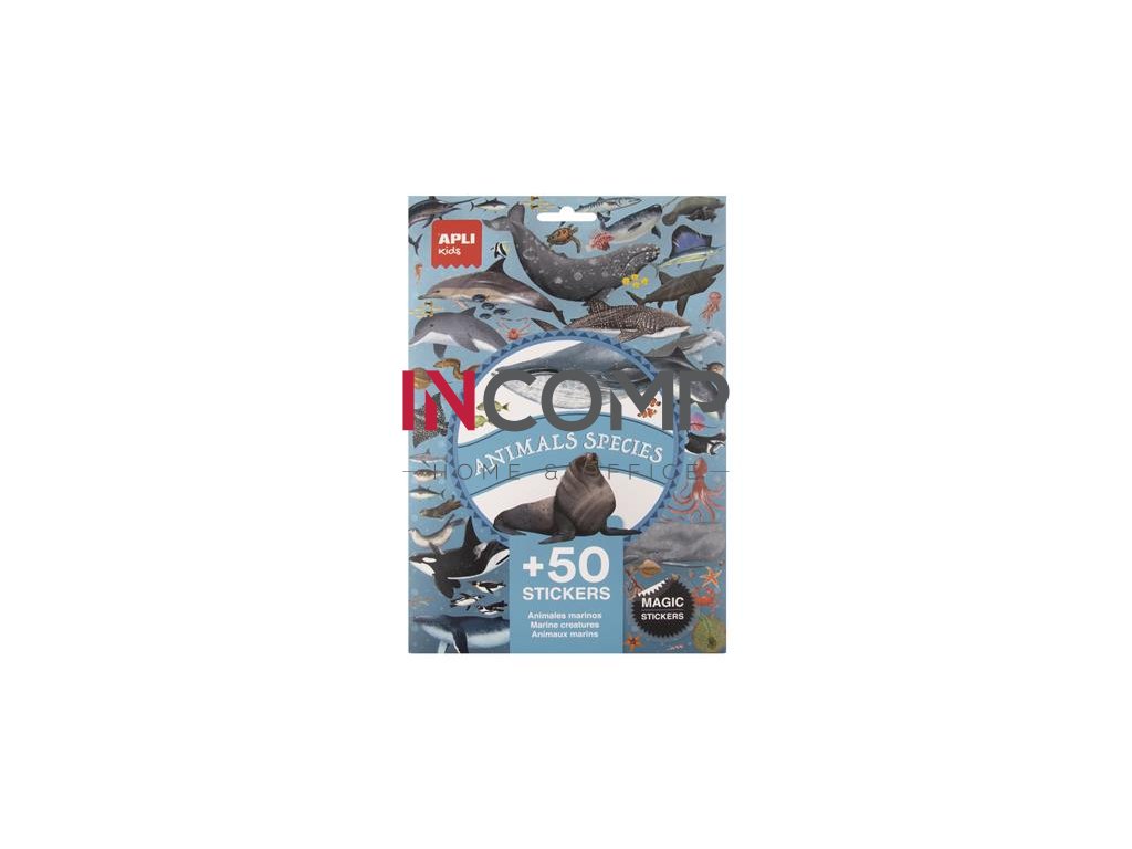 Nálepky, znova použiteľné, 50 ks, APLI Kids "Stickers", morské živočíchy