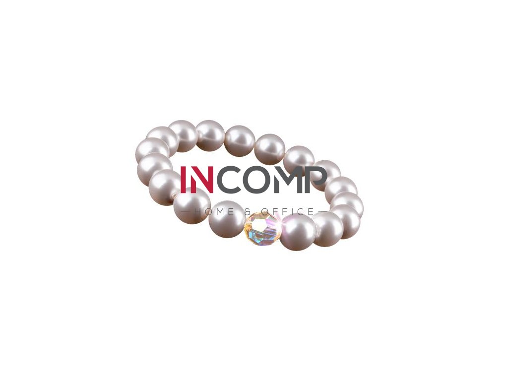 Náramok, z perleťovo bielych SWAROVSKI® perál, s dúhovým bielym krištáľom, 10 mm, ART CRYSTELLA®, M