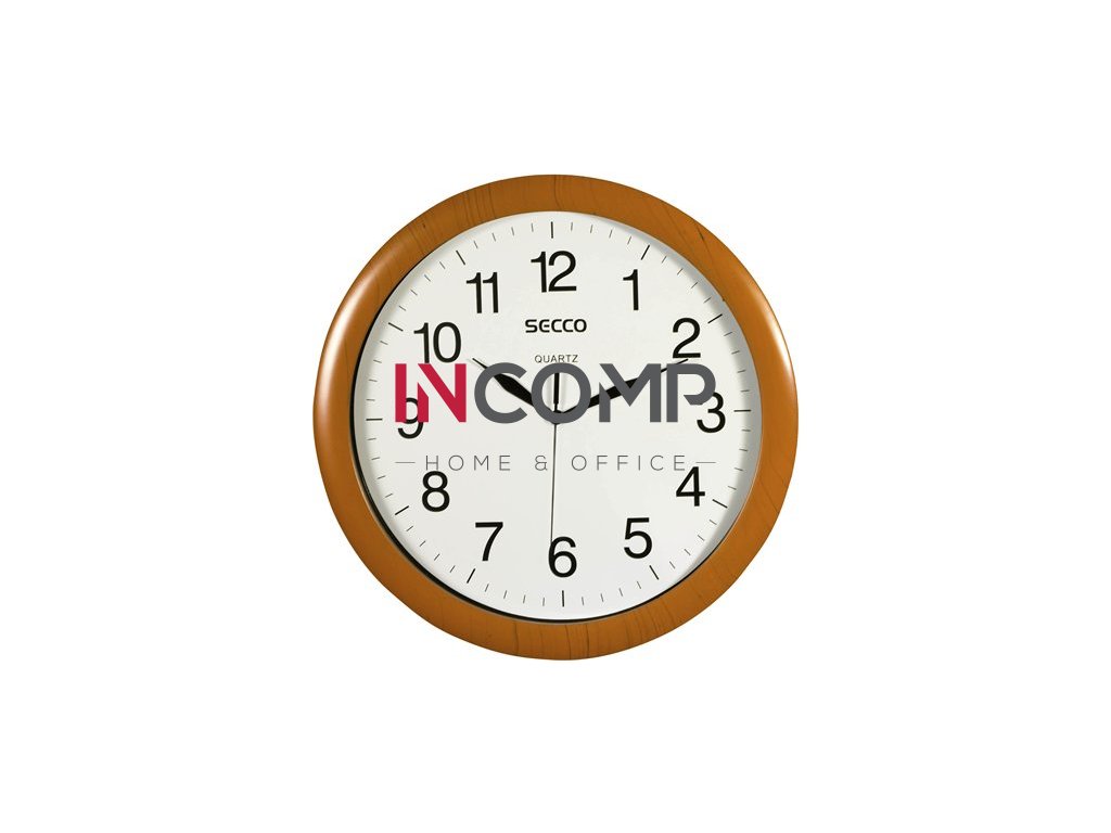 Nástenné hodiny, 33 cm, SECCO "Sweep Second", rám s dreveným efektom