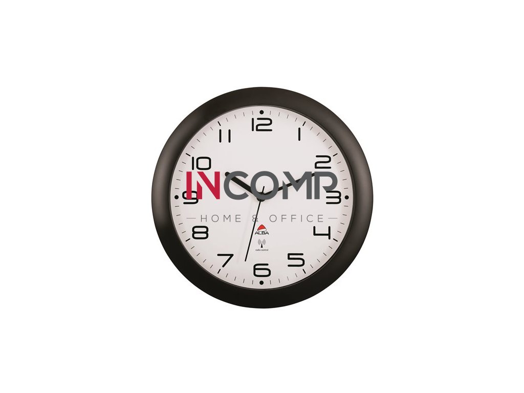 Nástenné hodiny, riadené rádiovým signálom, 30 cm, ALBA "Hornewrc", čierna