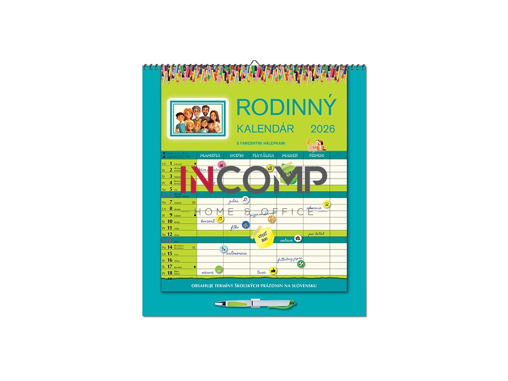Tento praktický kalendár ponúka veľa priestoru na zapisovanie aktivít celej domácnosti – každý člen si nájde svoj stĺpec! Každý mesiac je navyše doplnený o ilustrácie, motta. Súčasťou balenia sú aj samolepky s emotikonmi a piktogramami, ktorými si môžete jednoducho vyjadriť svoje činnosti, pocity a emócie – hravo a prehľadne. Kalendár obsahuje aj pero. Ideálny pomocník pre organizovanú a hravú domácnosť! Odporúčame ako darček spolu s Rodinným stolovým kalendárom S26-26.