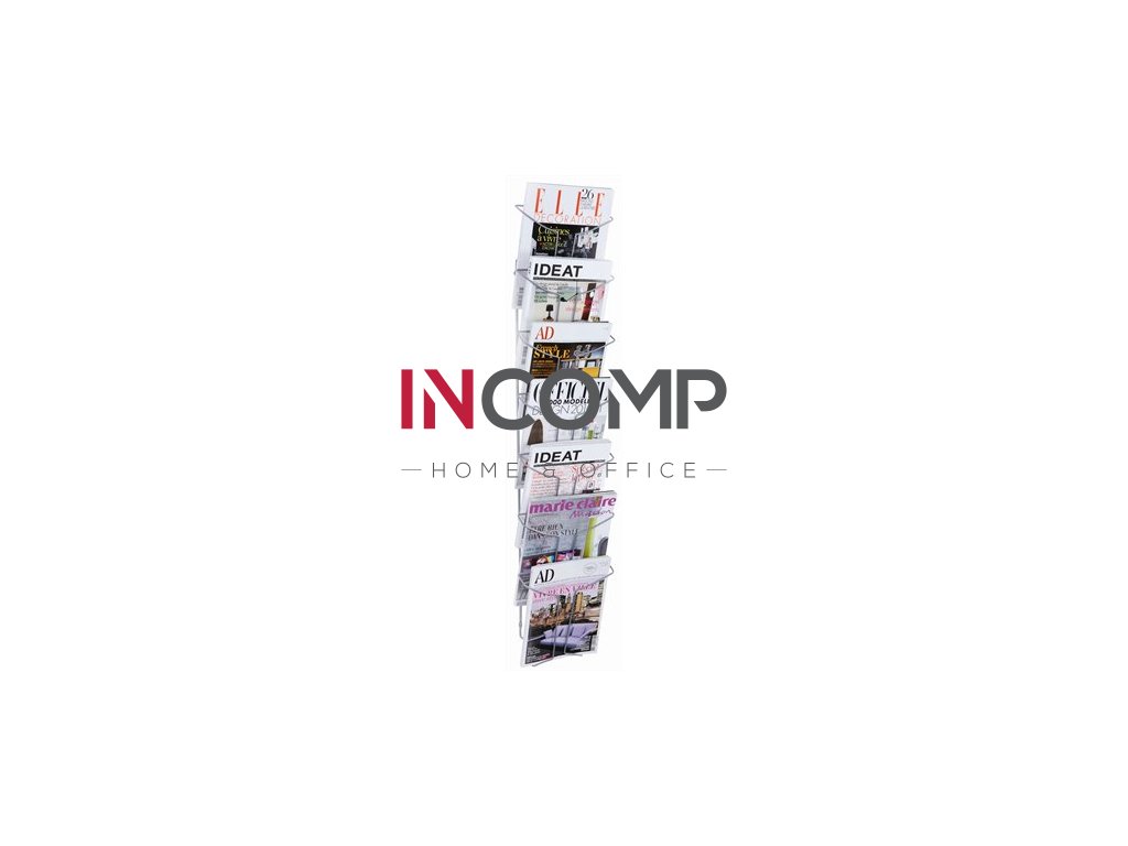 Nástenný prezentačný stojan, na katalógy, A4, 7 priehradok, ALBA, strieborný