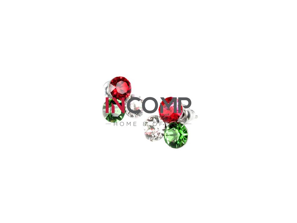 Náušnice, s červeno-bielo-zeleným SWAROVSKI® krištáľom, 11 mm, ART CRYSTELLA®