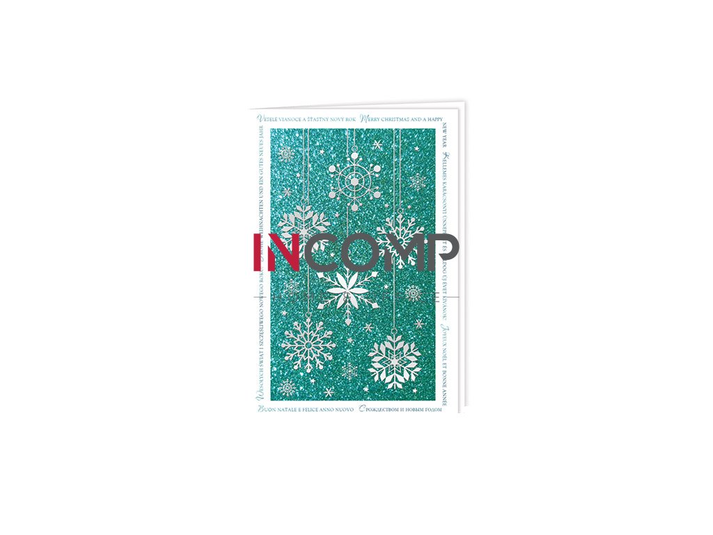 Novoročný pozdrav s glitrovým tyrkysovým papierom, razba,vnútorný papierik biely. Dodávané spolu s obálkou.