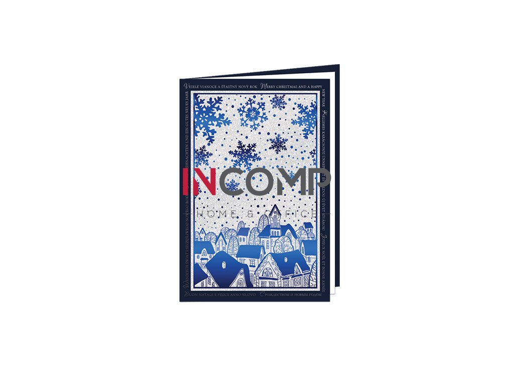 Novoročný pozdrav s glitrovým strieborným papierom, razba, vnútorný papierik biely. Dodávané spolu s obálkou.