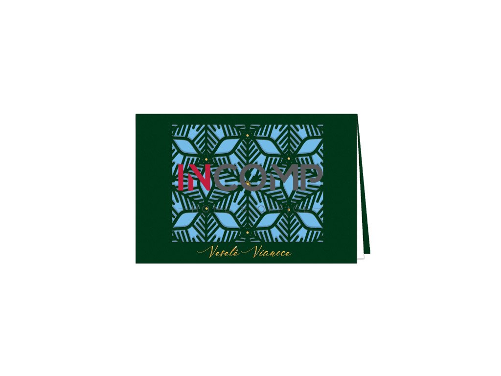 Novoročný pozdrav na grafickom papieri, laserový výsek, 3D lak zlatý, vario papierik v štyroch farebných prevedeniach. Dodávané spolu s obálkou. Modrá
