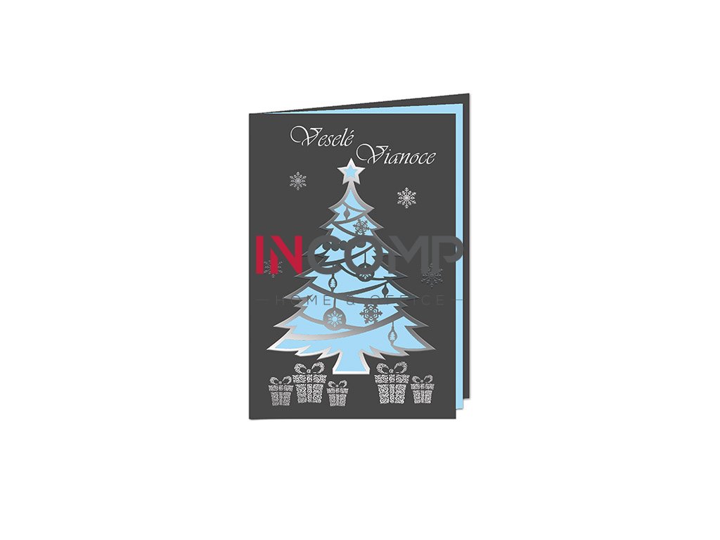 Novoročný pozdrav na grafickom papieri, laserový výsek, 3D lak zlatý, vario papierik v štyroch farebných prevedeniach. Dodávané spolu s obálkou.