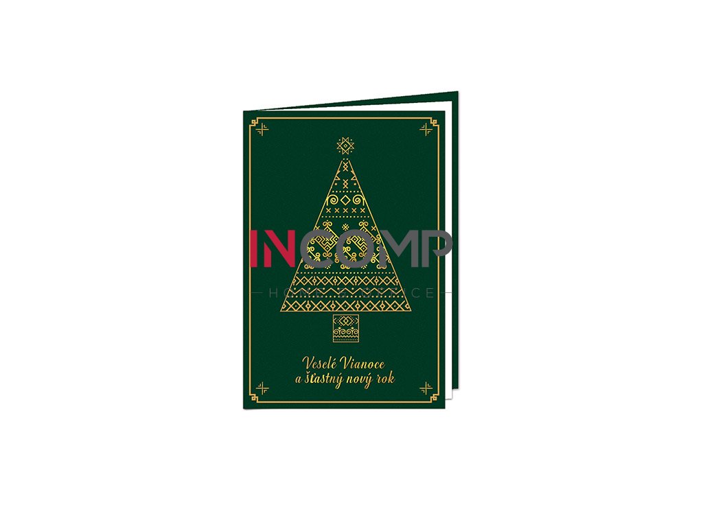 Novoročný pozdrav na grafickom papieri, 3D lak zlatý, vnútorný papierik biely. Dodávané spolu s obálkou.