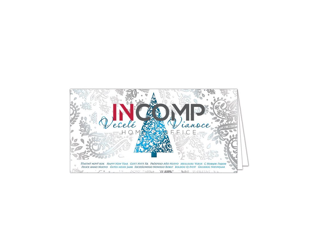 Novoročný pozdrav na grafickom papieri, strieborná a tyrkysová razba, vnútornný papierik biely. Dodávané spolu s obálkou.